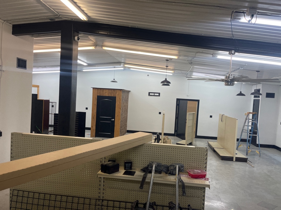 Installing shelves and setting up new FixDoor Garage Door Marble Falls office.